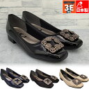 【送料無料】【日本製】neue ar he AC グログランリボン×サークルビジューバックル パンプス 日本製 3E エナメル ローヒール バレエシューズ 美脚 雨の日 幅広 3E オフィス 通勤 結婚式 卒入学 冠婚葬祭 ぺたんこ外反母趾 Ark-Shoes アークシューズ mh-1529 [lowheel]