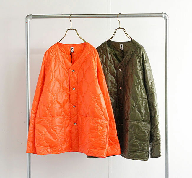 ・メーカー希望小売価格はメーカー商品タグに基づいて掲載していますBRAND : ohh!nisica ----------------------------------------------------------------------- NAME:キルティングジャケット ----------------------------------------------------------------------- nisica の別ライン ohh!nisica (オオニシカ)よりミリタリーのライナージャケットをモチーフにしたキルティングジャケット入荷です。 非常に軽量なナイロンのリップストップ生地に中綿キルティング加工を施しています。 肩周りや身幅はゆったり目のシルエット。袖付けはラグランスリーブ アウターとしてはもちろん、真冬はアウターのインナー使いにも便利な一枚です。 1から4まであり、サイズにより男女とにも着用いただけます。 オレンジ オリーブ ■素材: ナイロン100% ■カラー:オレンジ/オリーブ ■サイズ 1:身幅57 裄丈79 着丈65 cm 2:身幅59 裄丈81 着丈69 cm 3:身幅62 裄丈84 着丈71 cm 4:身幅65 裄丈87 着丈75 cm
