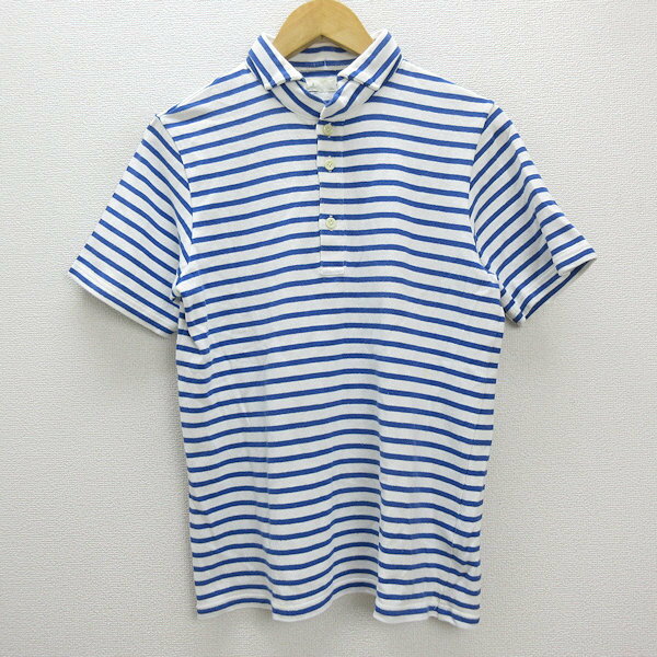 ◆ 日本製 ニシカ/nisica ボーダー柄 ポロシャツ トップス◆ 白/青 【2】 MENS/87【中古】