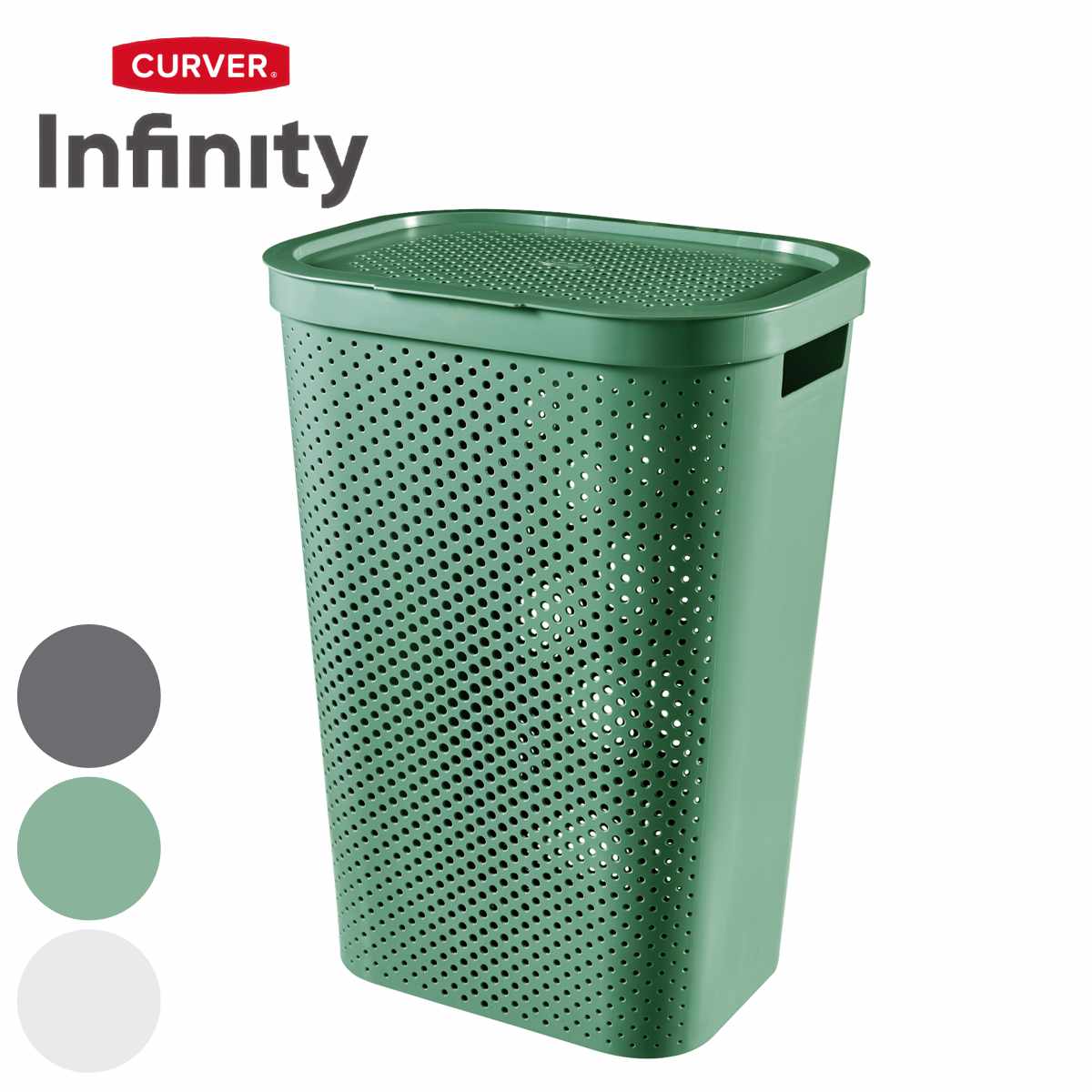 ランドリーバスケット CURVER インフィニティー 60L ふた付き ( カーバー Infinity バスケット ランドリー 持ち手付 洗濯 脱衣かご 洗濯かご 蓋付き 収納 おもちゃ 水回り 脱衣所 ダークグレー ホワイト グリーン )【3980円以上送料無料】