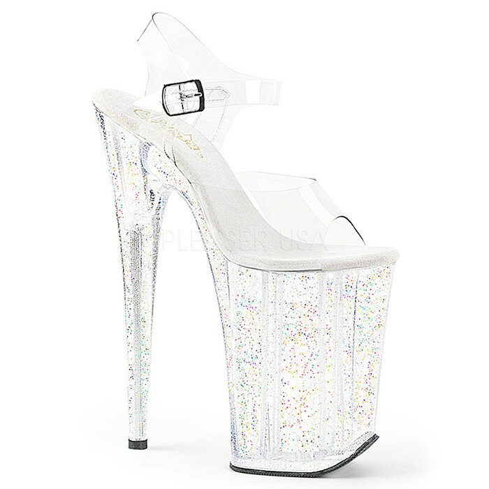 選べる靴用品プレゼント付 取寄せ Pleaser プリーザー レディース 超厚底 サンダル クリアのアンクルストラップとアッパー クリアヒール 厚底サンダル グリッターラメの厚底 ハイヒール 約23cmヒール ポールダンス 靴 大きいサイズ 衣装 INFINITY-908MG INF908MG/C/M
