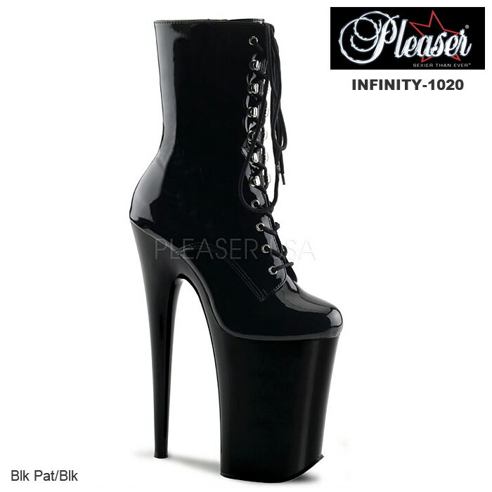 選べる靴用品プレゼント付 Pleaser(プリーザー) 9インチ(約23cm)ヒール 超厚底ショートブーツ/アンクルブーツ INFINITY-1020 ブラック◆取寄せ