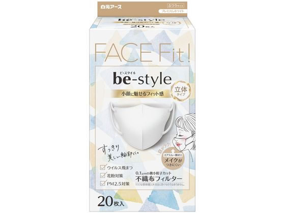 【レビュー投稿で100円OFFクーポン】白元アース ビースタイル 立体 ふつう プレミアムホワイト 20枚 マスク 鼻 のど対策 メディカル
