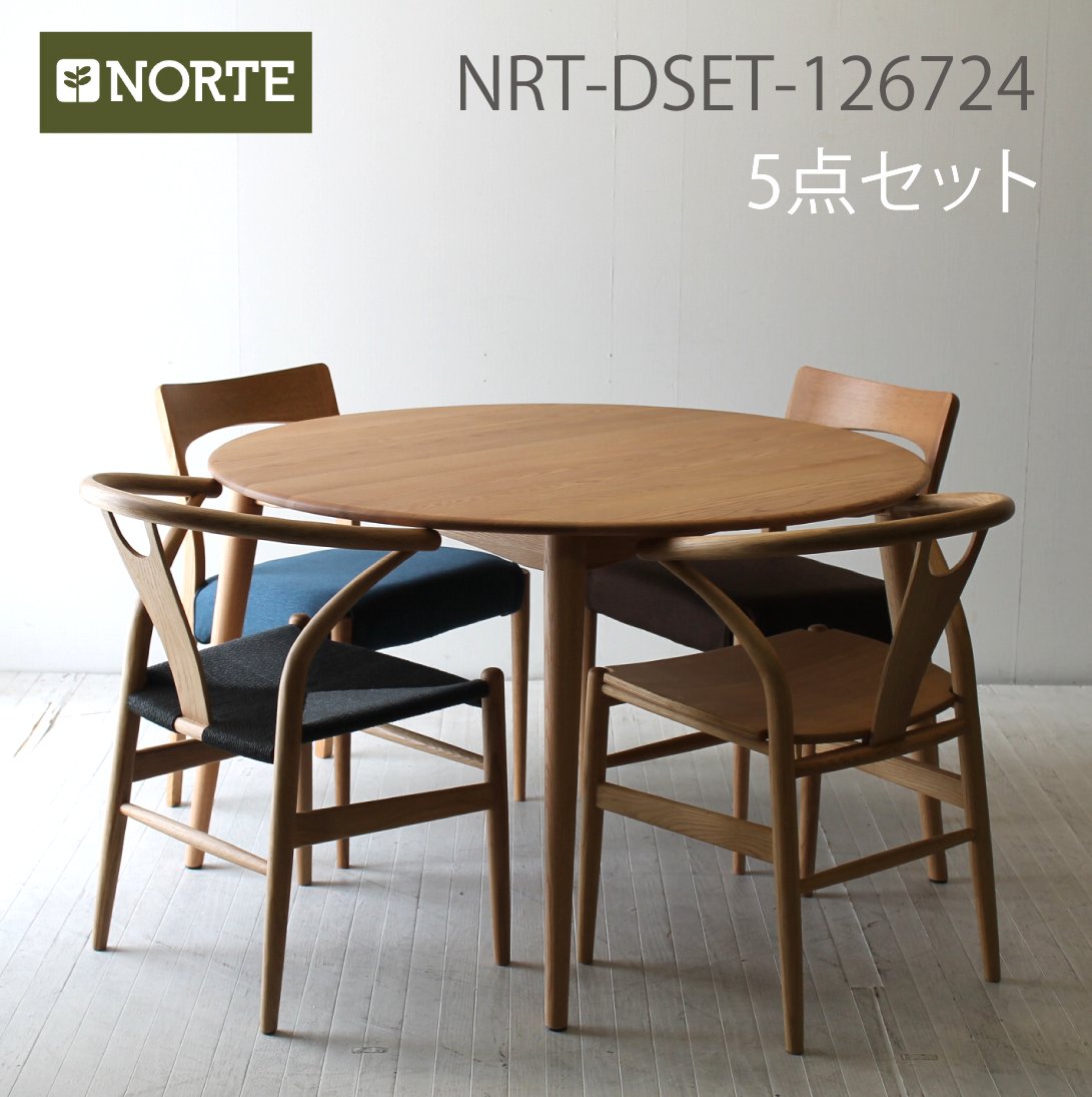 【1万円引きクーポンあり!】NORTEのダイニングセット NRT-DSET-126724 115cm丸テーブル+お好きなチェア4脚 ダイニング5点セット オークの丸ダイニングテーブル 心地よい円のフォルム インテリアに調和する丸テーブル シンプルで洗練された丸テーブル