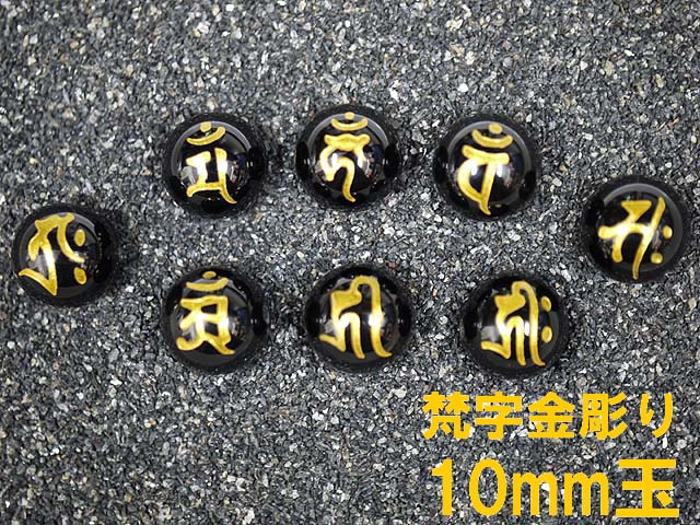 梵字金彫オニキス10mm 1粒売り 12支とその生まれ年の守護本尊が選べます 天然石 ポスト投函配送選択可能です ※梵字に向かって横穴になります。