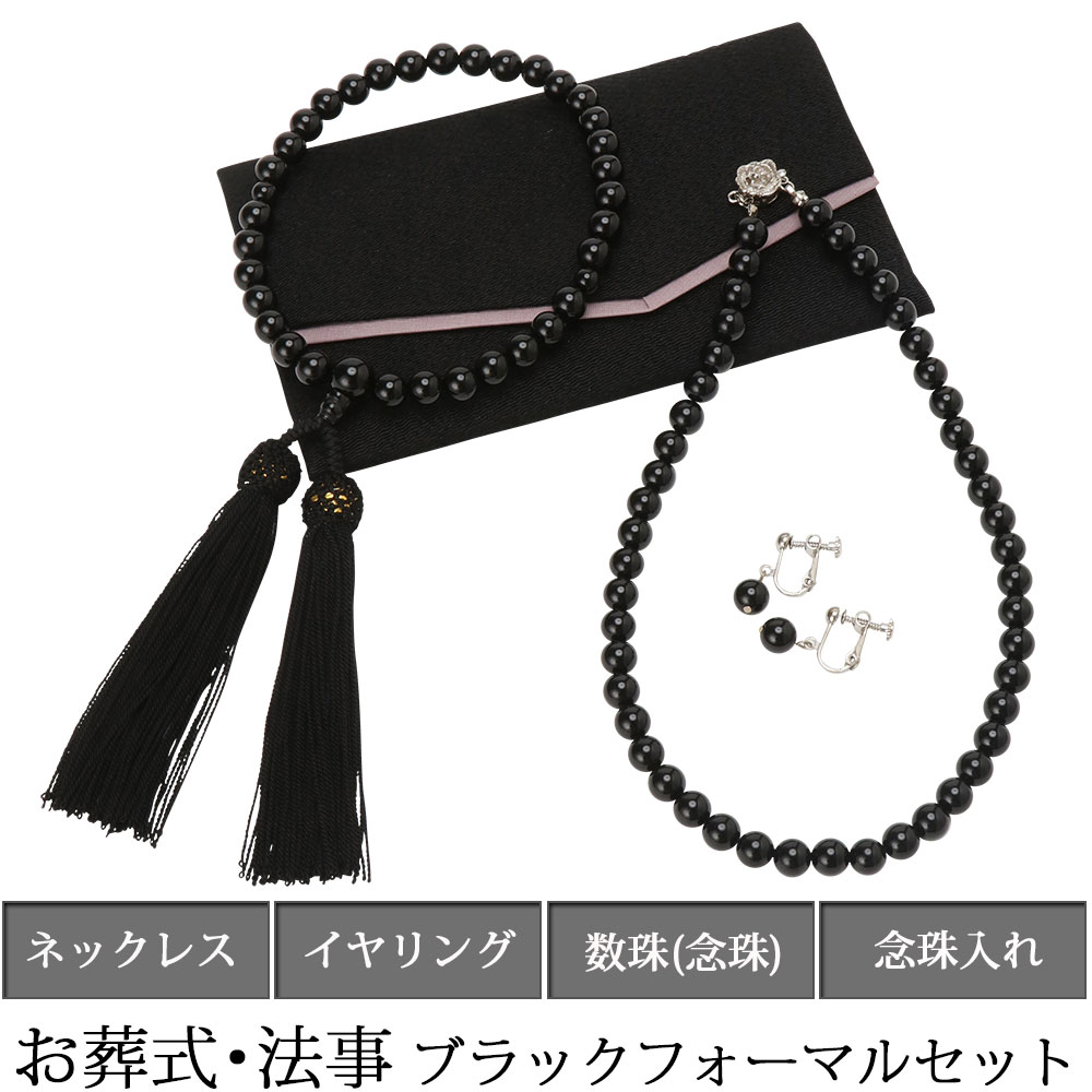 【ブラックフライデーP2倍】お葬式 数珠 フォーマル オニキス ネックレス 4点セット お通夜 告別式 イヤリング 念珠 略式数珠 念珠入れ 専用ケース 不祝儀 アクセサリー 日本製 レディース ジュエリー ワンスレッド One thread