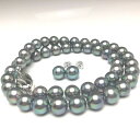 真珠 ネックレス パール 鑑別 アコヤ真珠 イヤリング or ピアス セット 8.0-8.5mm ブルーグリーン シルバー クラスップ 73414 イソワパール