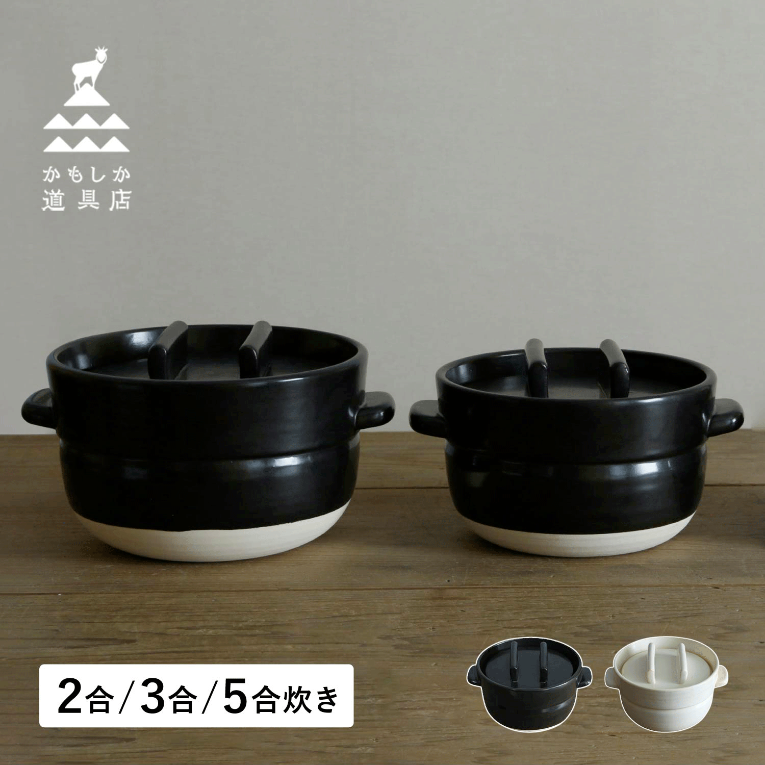 【 最大1000円OFFクーポン配布中 】 かもしか道具店 ごはん鍋 ご飯鍋 土鍋 炊飯鍋 萬古焼 2合 3合 5合 ブラック ホワイト 黒 白 OR-60-0004/OR-60-0006