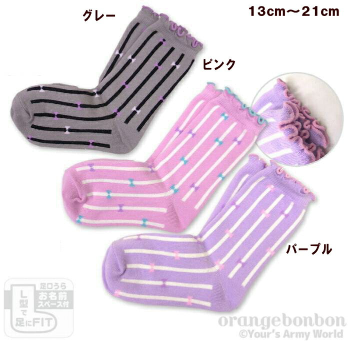 【こちらを3点以上購入&追跡メール便指定で送料無料】GIRL'Sストライプクルーソックス(13cm〜21cm)【ORANGEBONBON/オレンジボンボン】靴下/キッズ/ベビー/子供服/女の子/通園/通学/リボン/かわいい/OPENK
