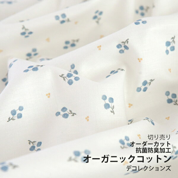 ★30%OFFクーポンBLACK FRIDAY★生地 布 入園入学 北欧風 コットン/幅109cm ≪ Organic - ブルーフラワー ≫ 抗菌・防臭加工 【10cm単位販売】【女の子】【花】【ナチュラル】【白】オーガニックコットン おしゃれ かわいい 勿忘草 韓国
