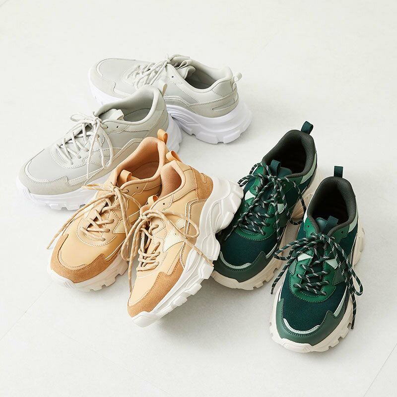 ボリューム感のあるシルエットが特徴のスニーカーは、アッパーに様々な形の切替を付けたり、ソールに凹凸を施し立体的にすることでゴツくなり過ぎずすっきりと履けるのがポイント。ストライプ柄のシューレースは丸紐にすることで女性らしい印象にしてくれる。ソールは軽量で柔らかい材質にしており返りが良く、足運びがしやすいのでたくさん歩く日でも疲れにくい。[型番:OT3728]【23.0cm〜25.5cm】大きいサイズ 小さいサイズ■カラー:キャメル、グリーン、グレー0※( )で表記されている数字はヌードサイズです。ヌードサイズとは衣服を身につけない身体のサイズです。お客様ご自身の身体サイズと比較してお選びください。 ■素材: アッパー:合成皮革×スエード牛革×ナイロン生地、裏側:ナイロン生地、ソール:ゴム ■お手入: >>商品のお取り扱い方法 ■原産国: 中国ストライプシューレース厚底スニーカー/OT3728/オリエンタルトラフィック(ORiental TRaffic)キャメルグリーングレー画面上と実物では、多少色具合が異なって見える場合がございます。