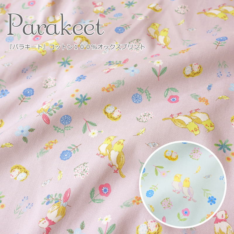 『Parakeet≪パラキート≫』コットン100%オックスプリント素材:コットン100% 生地幅:約110cmインコ/女の子/キッズ/大人/綿/生地/入園/入学/小物/ウェアー/服/インテリア/ハンドメイド/手づくり/