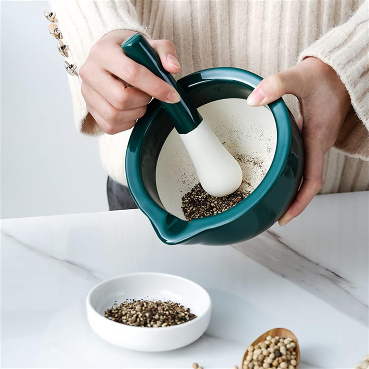 ミニすり鉢 スリ鉢 乳鉢 スパイスミル ごますり器 mortar and pestle にんにくつぶし器 ごますり器 ゴマすり器 石臼セット ミニ 小型 セラミック 薬研 料理 調味料 キムチ作り 調理器具 キッチン用品 すり鉢・すりこぎ棒セット 離乳食 研磨用 (S,ブラック)