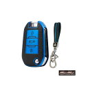 マッドマックス プジョー専用 レザー調 TYPE A 3ボタン式 TPUソフト スマートキーケース(ブルー) MM50-A09-PE03