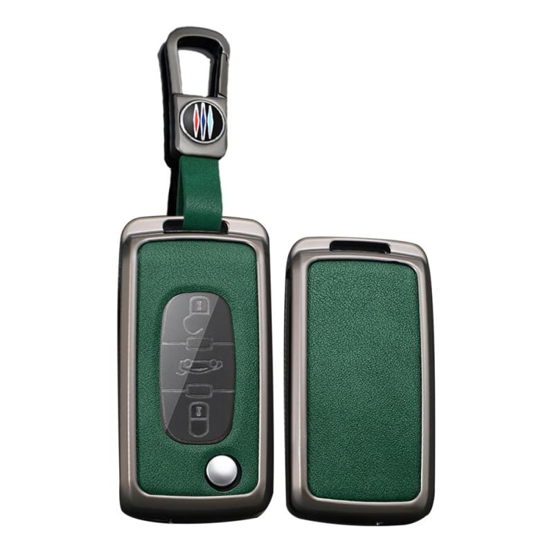 マッドマックス プジョー専用 レザー調 TYPE C 3ボタン式 TPUソフト スマートキーケース(グリーン) MM50-C09-PE04