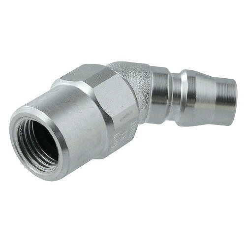 特長:ロータリ機能で360°の首振り回転。エア工具の作業性を大幅に改善します。プラグ本体に45°の角度をつけることによって、ホースから伝わる手元の負担を軽減。耐ダスト性を考慮した新設計によって耐久性もアップしました。空気工具・機器類のホース接続用首振りプラグ。本体に45゜の角度を設け、ホースから伝わる煩わしい負担を解消。作業性を追求し、本体構造のシンプル化によってコンパクト設計を実現。従来製品に比べて大幅に軽量・小型化。耐ダスト性を考慮した新設計によって、耐久性がさらにアップ。エアサンダーなどの空気工具接続用。用途:仕様:最高使用圧力(MPa):1.5耐圧力(MPa):2.0相手側取付サイズ:G1/4使用温度範囲(℃):-20〜80使用流体:空気相手側取付ねじサイズ:G 1/4おねじ取付用バルブ構造:片路開閉型ロータリ機能で360°の首振り回転。エア工具類の作業性を改善。材質/仕上:本体:鋼鉄(ニッケルメッキ)シールゴム:ニトリルゴム(NBR)セット内容/付属品:注意:
