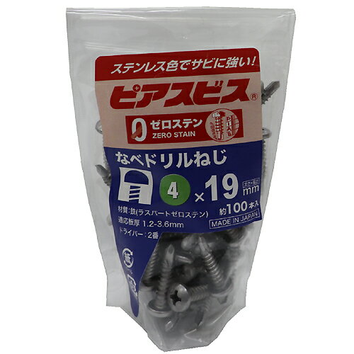 【メール便可】八幡ねじ PIAS ゼロステン ピアスビス なべドリルねじ 4×19mm 約100本入