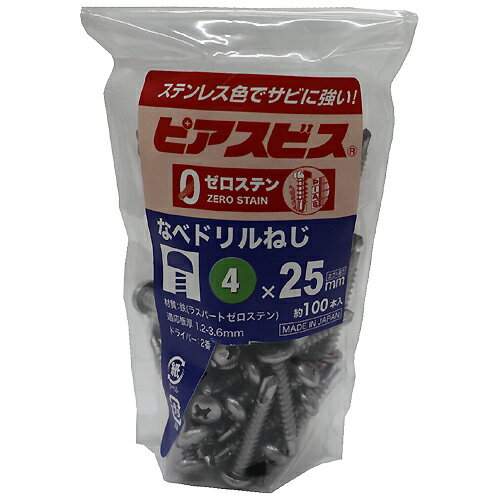 八幡ねじ PIAS ゼロステン ピアスビス なべドリルねじ 4×25mm 約100本入
