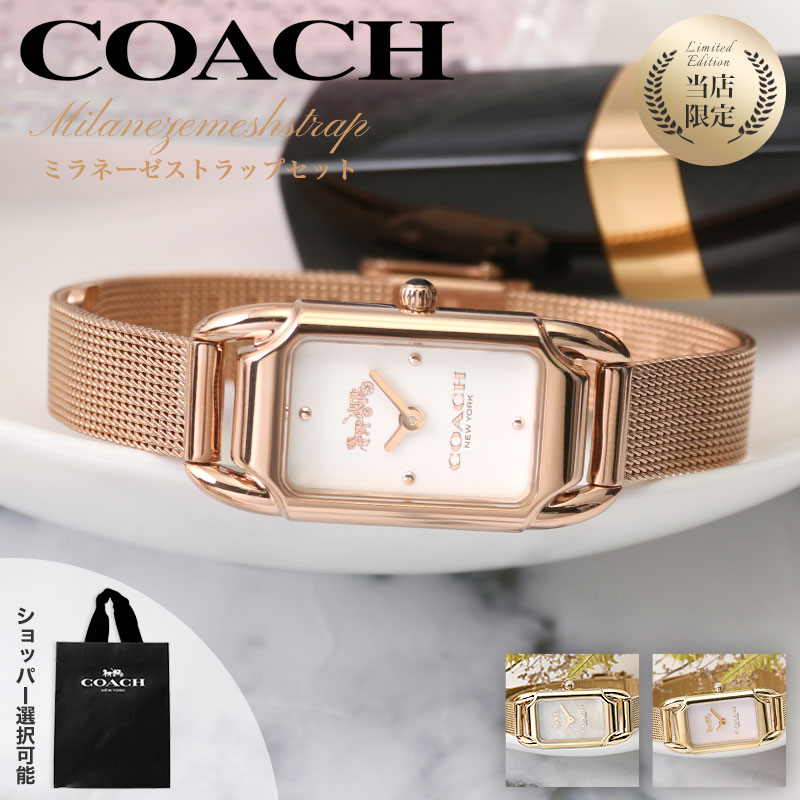【ショッパー あり】コーチ 腕時計 レディース ブランド COACH 時計 コーチ時計 女性 彼女 妻 奥さん 恋人 娘 プレゼント 人気 革ベルト おしゃれ 革 メッシュ ベルト ピンクゴールド ローズ ゴールド シンプル 華奢 小さめ アンティーク レトロ スクエア 可愛い レクタン