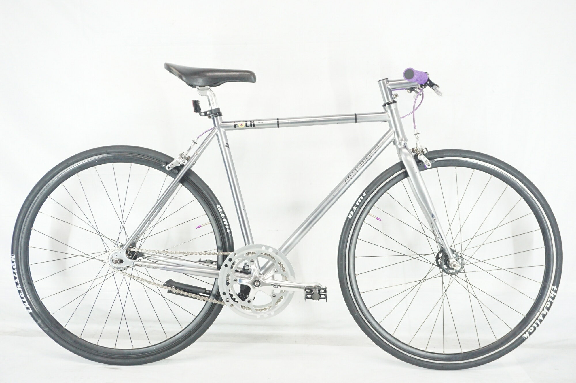 ■商品情報メーカーサイズ:49シートチューブ(C-T):490mmトップチューブ(C-C):520mm(ホリゾンタル換算)適応身長:165-175cm(目安)重量:約9.4kgフレーム材質:クロモリフロントフォーク:クロモリレバー:TEKTOROブレーキ:TEKTOROクランク:純正46T 165mmスプロケット:16Tシートポスト:純正27.2mmハンドル:NITTO400mmステム:NITTO70mmサドル:純正ホイール:VELOCITYタイヤ:700x28c変速段数:シングル付属品:なし■状態キズや塗装剥がれ・日焼け、塗膜の劣化によるひび割れ、サドルの破れはございますが、致命的なダメージはなく動作良好です。チェーンリングやフリーコグに摩耗はございますが、歯飛びなどは見られません。チェーン・ブレーキシュー・バーテープ・ワイヤー交換済みでございます。※掲載画像以外にもキズや汚れはございますが、写真の掲載可能枚数の都合上、目立つ箇所を優先的に抜粋しております。 ■注意事項【在庫について】 在庫管理は細心の注意を払い行なっておりますが、システムの都合により在庫有と表記の商品につきましても、実在庫の反映との時間差により在庫が無い場合がございます。弊社はそれに伴う全てにおいて一切の責任は負いかねます事、何卒ご了承くださいませ。ご注文頂きました商品のご用意が出来かねました場合は、お電話とメールにてキャンセルご承諾お願いのご連絡をさせて頂きます。【掲載画像について】撮影方法やお客様の閲覧環境により、実際の商品とは違った色の見え方となる場合がございます。上記理由による返品、変更、キャンセルは一切お受け致しかねますまたシステム等の不備により、商品ページに別商品が含まれている、別カラー・仕様が掲載されている、商品情報に誤表記がある場合がございますご不明点がございましたら必ずご注文前にお問い合わせくださいませ。