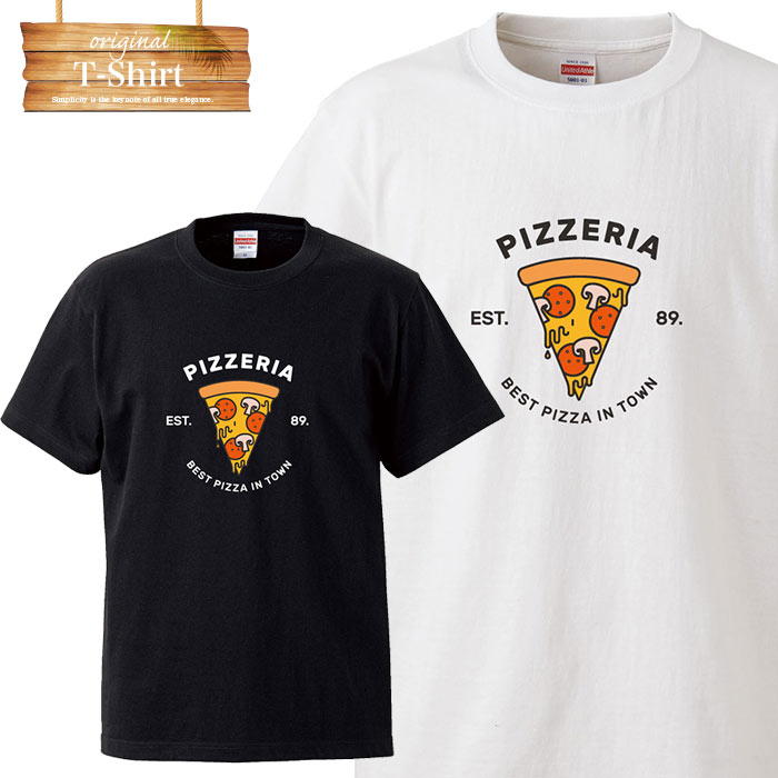 Tシャツ メンズ 半袖 おしゃれ プリント ブラック ホワイト クルーネック 綿100% カジュアル メンズファッション 5.6オンス プリントtシャツ PIZZA ピザ ワンポイント ART POP おしゃれ