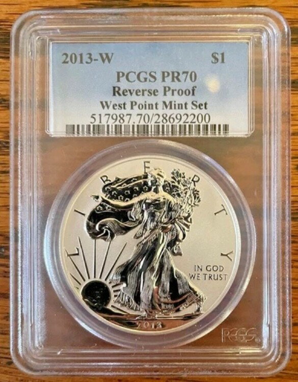 2013年 Wリバースプルーフ シルバーイーグル。ウェストポイント。PCGS PR70