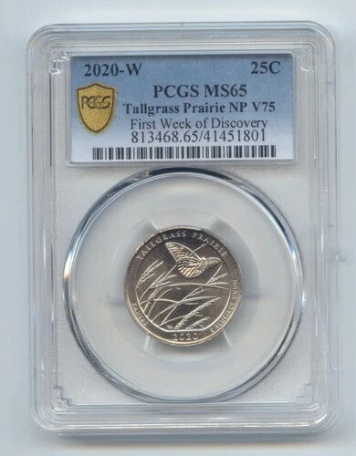 2020-W カンザス州トールグラス・プレーリー、V75 ウェストポイント、PCGS MS-65、初週ディスカバリー