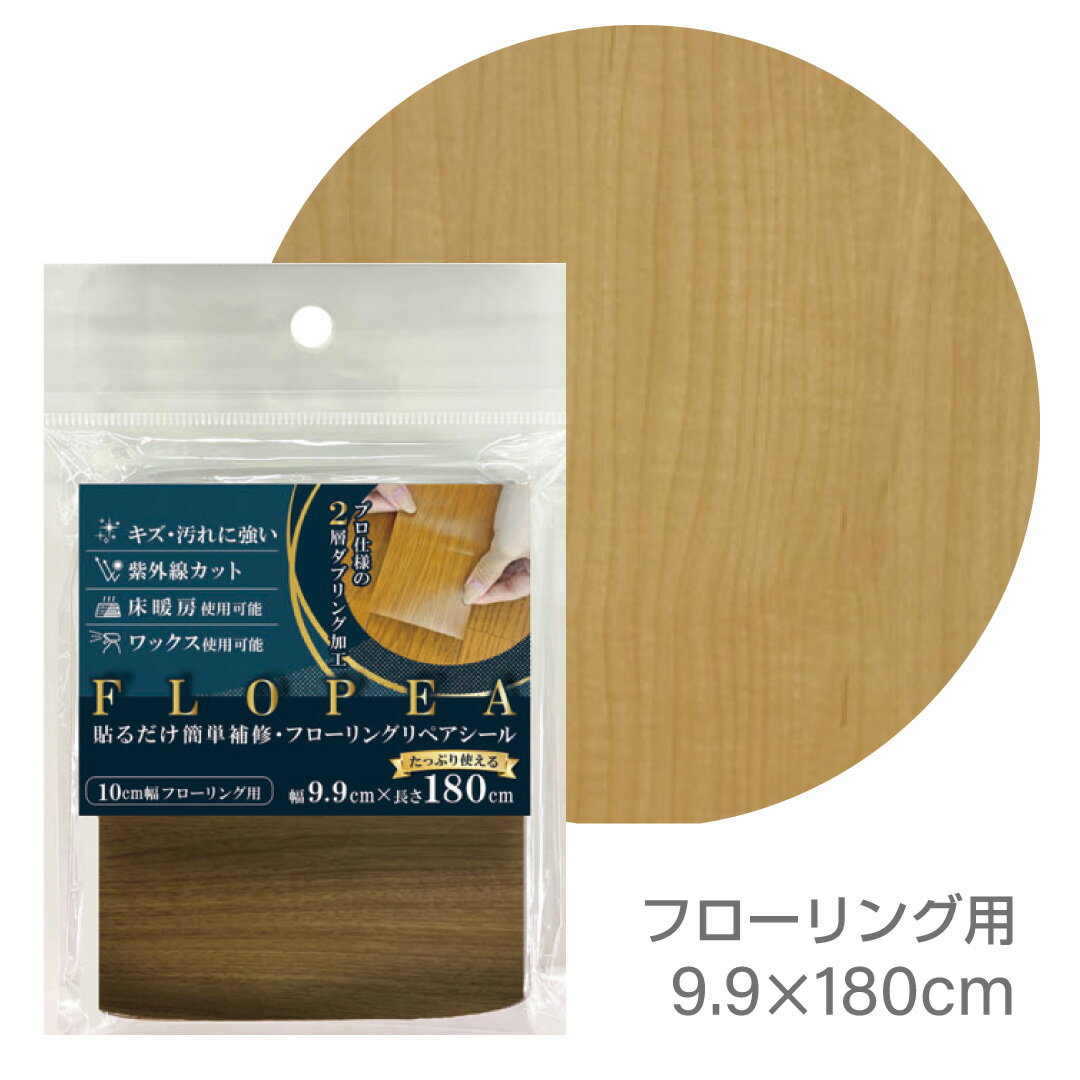 ■フローリングリペアシール:9.9cm×180cm×1枚入 ■フローリングによく似た木目シール ■傷・汚れに強い ■紫外線カット効果 ■ワックス使用可能 ■床暖房にも貼れる <日本製>フローリング補修シールは、フローリングのキズ・汚れ隠し補修に最適なアイテムです。フローリングの大きさに合わせた9.9cm×180cmのサイズのシールで、簡単に貼ることができ、自然な木目が美しい仕上がりを実現します。床暖房にも対応しており、床の美しさを長持ちさせます。お手軽に補修をしたい方におすすめです。