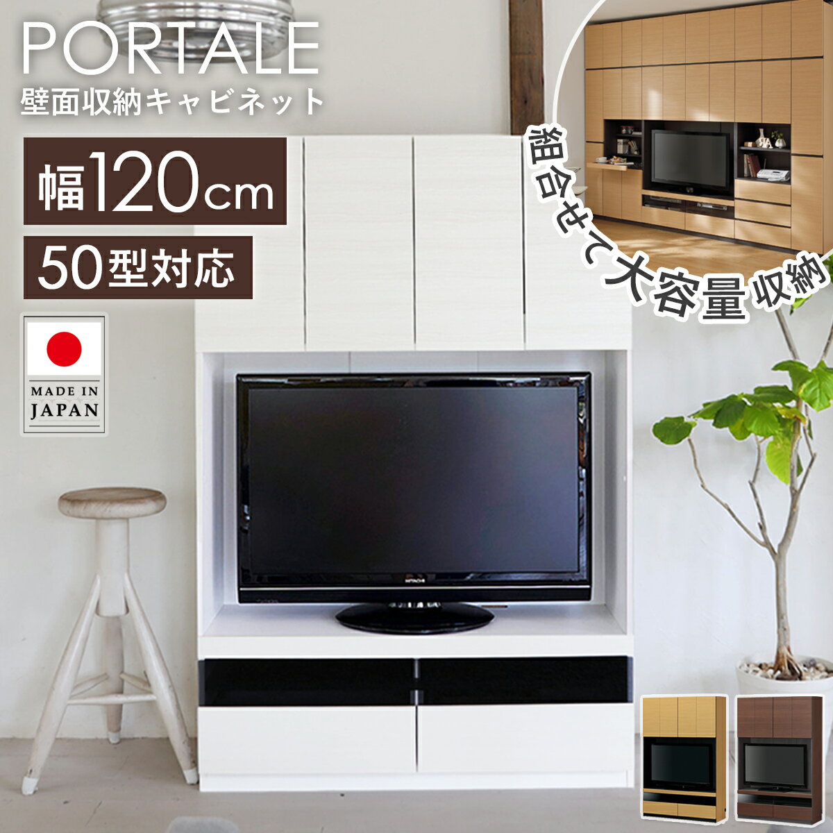 【先着クーポンでMAX10%OFF】 [国産] 壁面収納 テレビ台 幅120cm 50型対応 棚 収納 テレビ棚 TV台 テレビ 引き出し テレビボード リビング収納 木製 TVボード AVボード テレビラック 白 キャビネット 壁面家具 ホワイト ブラウン おしゃれ ポルターレ por-1812tv netc5