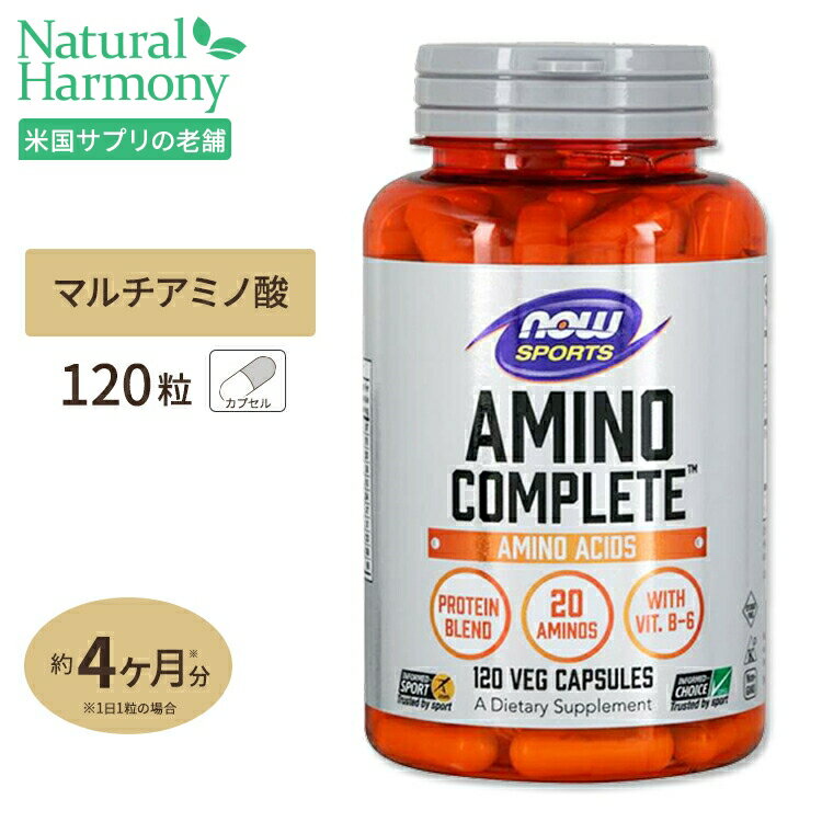 [バランスの良いアミノ酸補給に]アミノコンプリート 120粒 NOW Foods (ナウフーズ) Amino Complete 120caps カプセル マルチアミノ酸 ビタミンB6 プロテイン グルタミン アルギニン オルニチン 健康サプリメント 栄養補助食品 ナウスポーツ nowsports