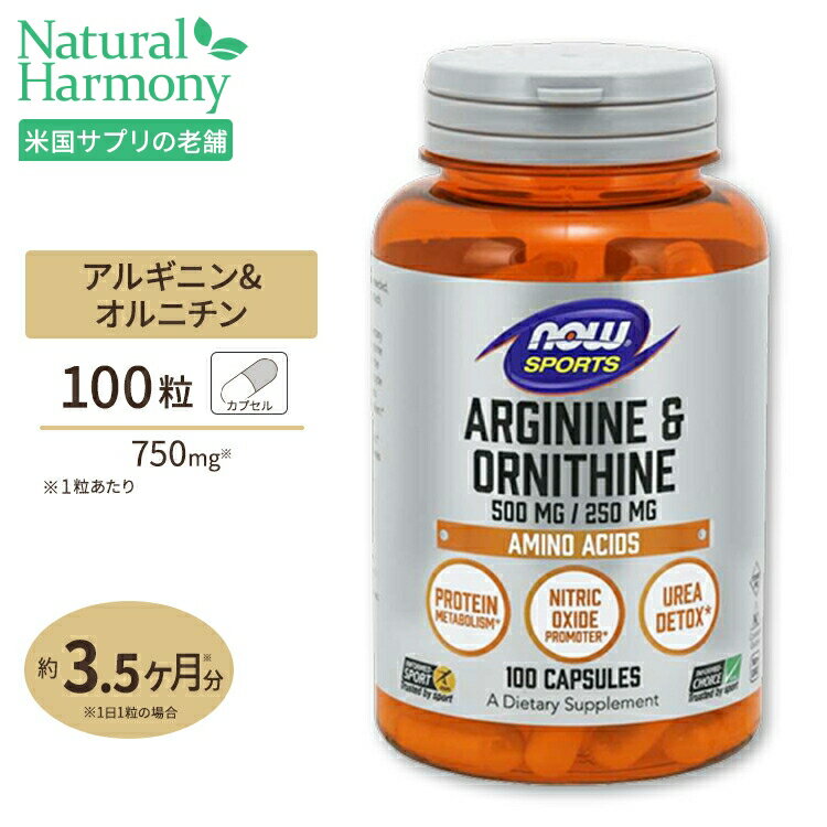 【店内8千円以上1000円OFFクーポン】[バランスの良いアミノ酸補給に]L-アルギニン & L-オルニチン 500mg 250mg 100粒 NOW Foods(ナウフーズ) Arginine & Ornithine 健康サプリメント 栄養補助食品 海外 アメリカ ナウスポーツ nowsports