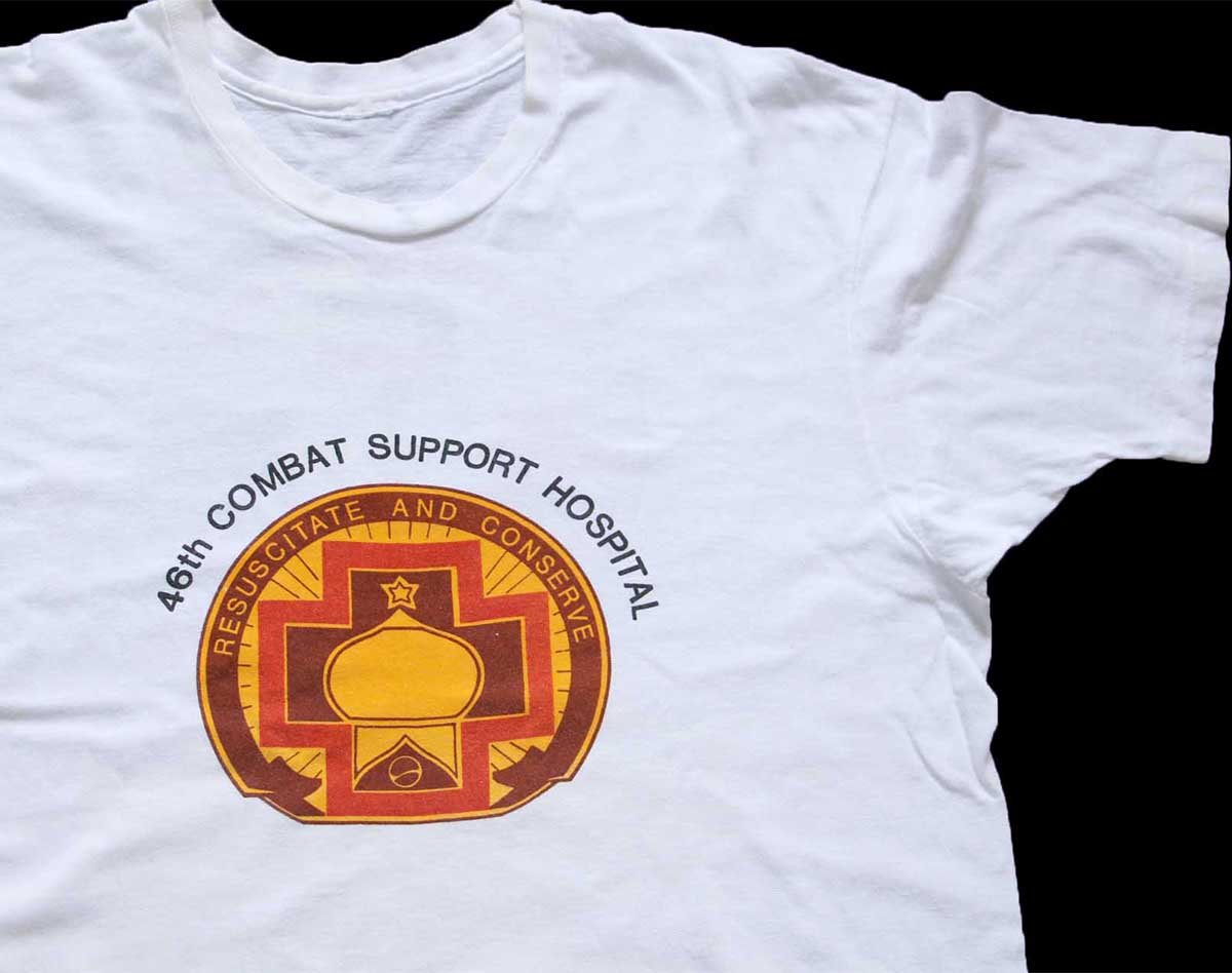 90s 46th COMBAT SUPPORT HOSPITAL OPERATION DESERT STORM 両面 染み込みプリント コットンTシャツ 白【中古】