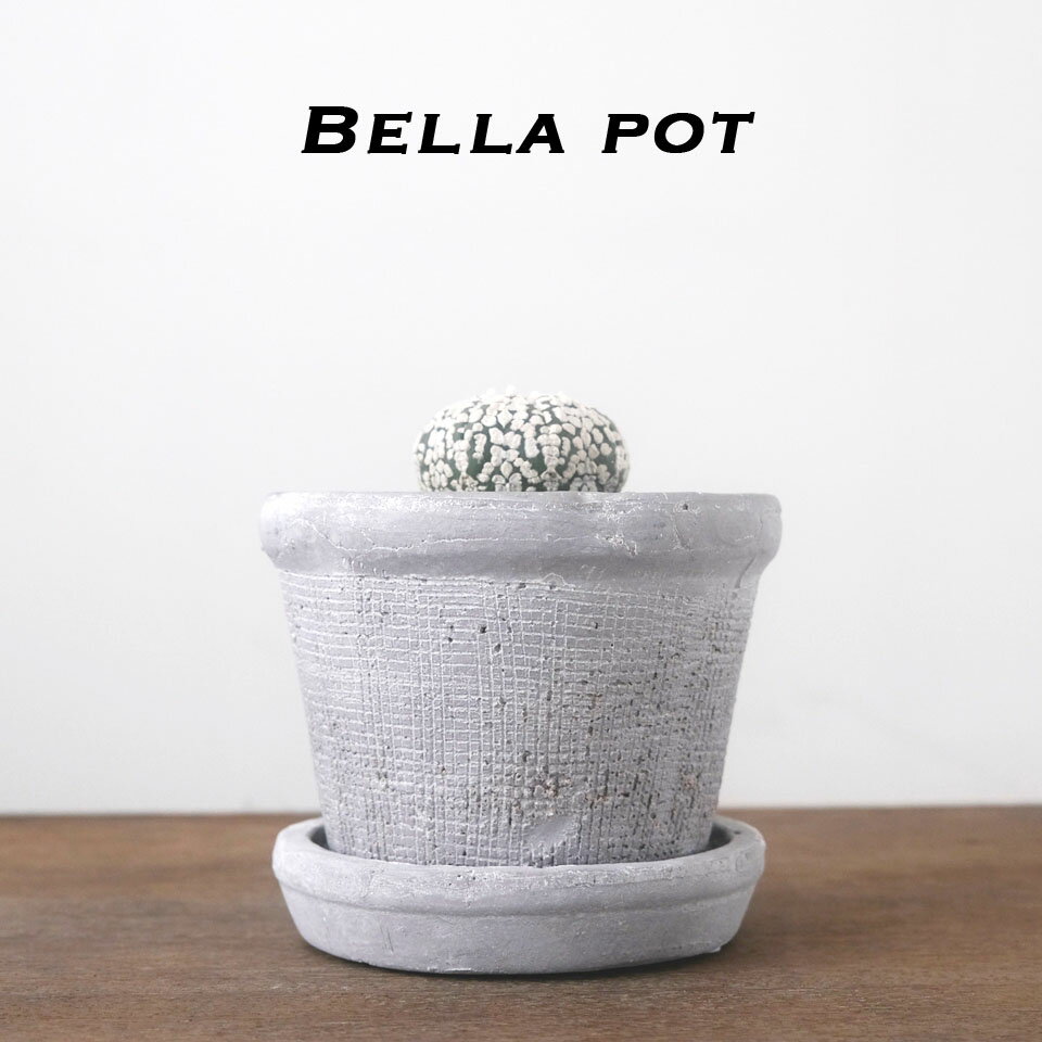 BELLA POT3号鉢 11.5cm 植木鉢 受け皿付 トレー付 北欧風 グレー 透明感 型押し 素朴 手作り 小さい シンプル インテリア ミニマム かっこいい かわいい おしゃれ ハーブ ピレア ペペロミオイデス サボテン アガベ 多肉植物 プレゼント ナチュラル