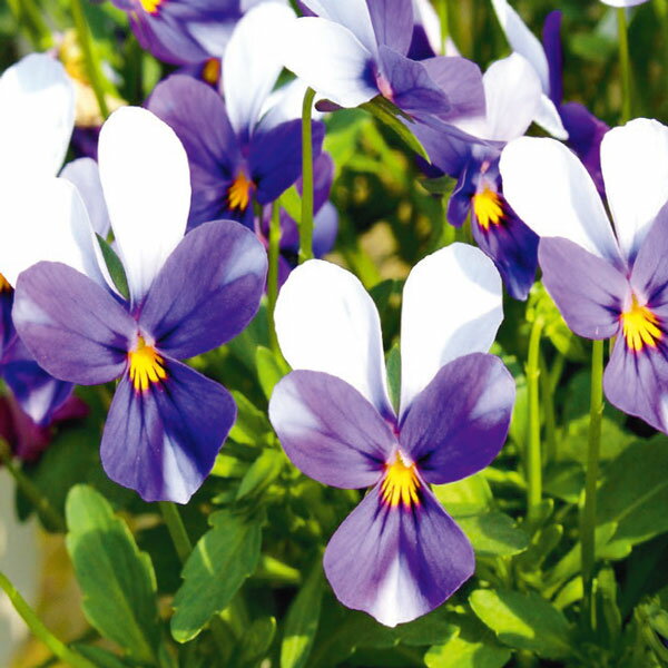 ラビットタイプ さわやかな色合い草花の苗/見元園芸さんのビオラ:ハリーの冒険3-3.5号ポット 6株セット高知県の育種家、見元一夫氏のビオラ。やわらかな色あいと可憐な花で大人気です。毎年新しい品種も誕生し、さらに魅力的に。可憐な見元ビオラの世界をお楽しみください。ハリーの冒険は紫とライトブルーのさわやかな色合いのラビット型ビオラ。株張りもよく寄せ植えや大鉢仕立てにもマッチします。花色は色幅があります。個体により気温が低くなってくると色が薄くなってくるものがあります。※みもとオリジナル品種は見元園芸が育成したものです。無断での使用、増殖を固く禁じます。タイプスミレ科スミレ属の耐寒性1年草開花期10月下旬〜5月株張り15〜20cm草丈15〜25cm花径約3cm摘芯不要切り戻し不要花がら摘み必要日照半日以上直射日光の当たる屋外植込み株数の目安 鉢プランター:3株/30cm・横長プランター:3株/65cm・花壇:9〜10株/1平方メートル育て方:日照不足になると、葉が黄色くなったり、花付きが悪くなるため、日の当たる場所で管理して下さい。水あげは土の表面が乾いてからたっぷりと与えてください。冬期は夕方以降に水やりをすると、土が凍ってしまうことがあるため、できるだけ午前中に与えて下さい。植え付け後は10日に1回程度、液体肥料を与えてください。長く花を楽しむために、終わった花はこまめに摘み取って下さい。花がらは花茎の根元から指で軽くひねるようにし、花茎ごととり除きます。 写真は成長時(開花時)のイメージです。見元園芸さんのビオラ:ハリーの冒険3-3.5号ポット 6株セットの栽培ガイド花がらつみパンジー・ビオラの栽培方法パンジー・ビオラのコンテナガーデン