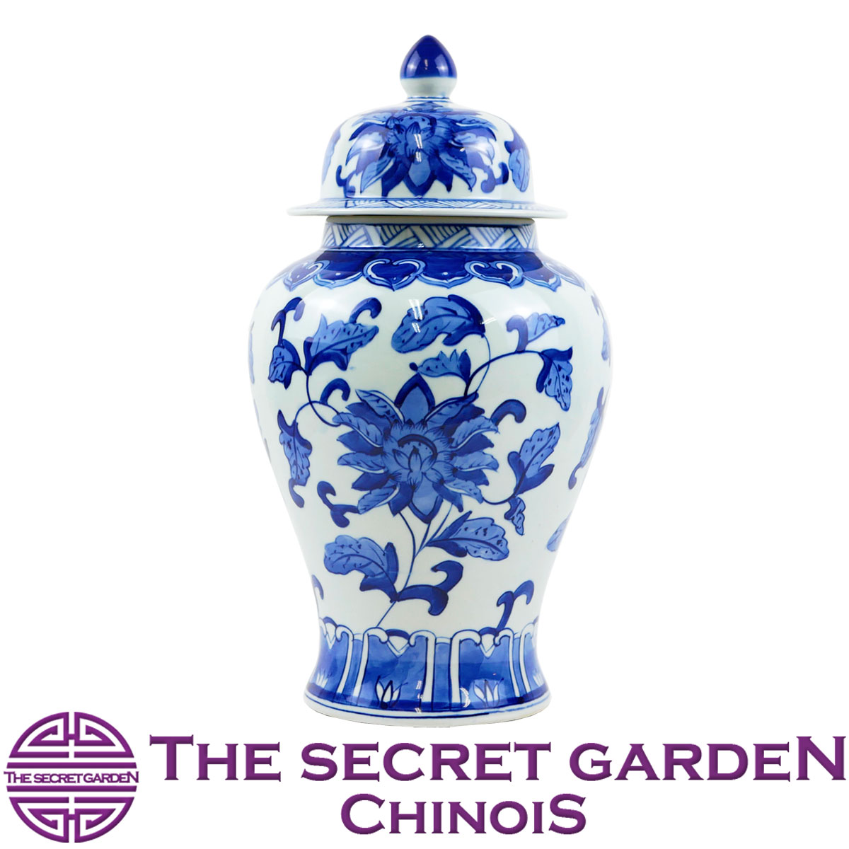 アウトレット品 【送料無料】ホワイト 大 蓋付飾り壺 青白陶器 シノワズリ Blue & White THE-SECRET-GARDEN 大【保存容器 ジンジャーポット アンティーク風 雑貨 景徳鎮 ブルーアンドホワイト 青色 置物 オリエンタル】 ザ・シークレットガーデン シノワ