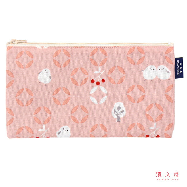 濱文様 フラットポーチ シマエナガ七宝 ピンク