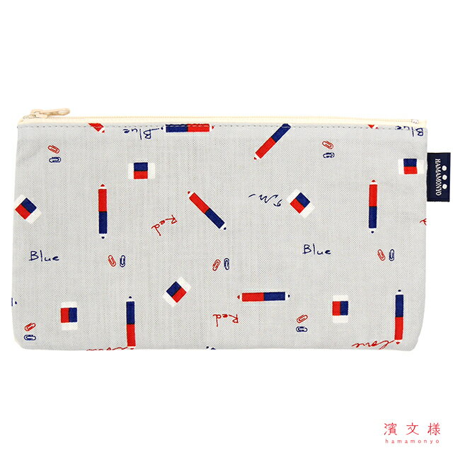 濱文様 フラットポーチ まめ赤青えんぴつ