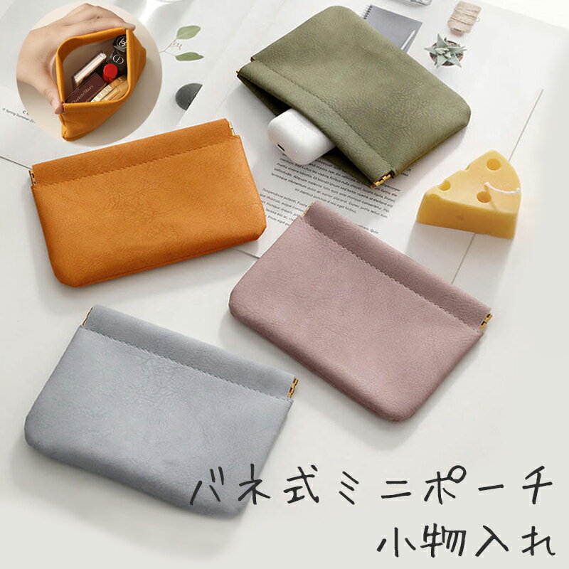【11/22(土)12:00〜 ブラックフライデー! 12時間限定全品5%OFFクーポン配布中】バネ式 小物入れ ミニポーチ / バッグ ポーチ かわいい コインケース コスメポーチ モバイル 携帯 フラットポーチ 片手で簡単 シンプル 定番 使いやすい 飾りなし 無地 大人 くすみカラー