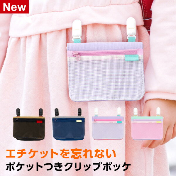\本日Point2倍/【学習文具】クリップポッケ ポケットポーチ 4色 マスクやハンカチ、ティッシュの携帯に 女の子 男の子 小物入れ メッシュ(メール便対象)