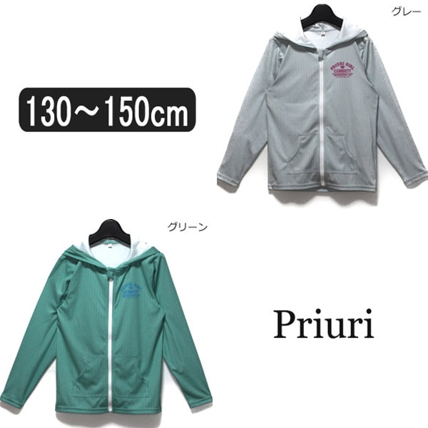 【在庫限り】 女の子 ラッシュガード キッズ 795982 フード付 ストライプ柄 長袖 ラッシュガード キッズ グリーン グレー 130cm 140cm 150cm Priuri プリウリ メール便は送料無料 子供 女の子 子供服 水着 ジュニア 子ども 長袖 ジップアップ ジップ 緑 灰 zss yob2507