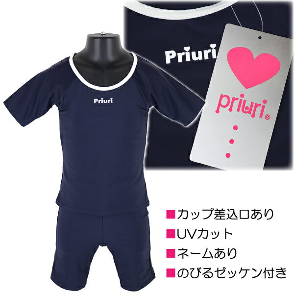 Priuri プリウリ スクール水着 セパレート水着 半袖 水着 子供 キッズ 女児 のびるゼッケン付き 紺無地 140-170cm 入園 入学 通園 通学 水泳 【送料無料】