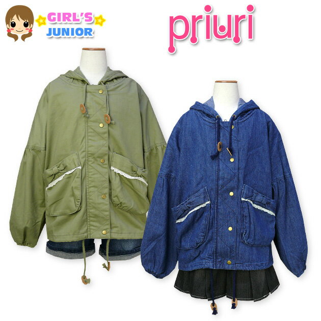 【送料無料】【女児ジュニア】【ジャケット】priuri リボン&レース装飾ポケット ドルマン一重ジャケット【140cm】【150cm】【160cm】