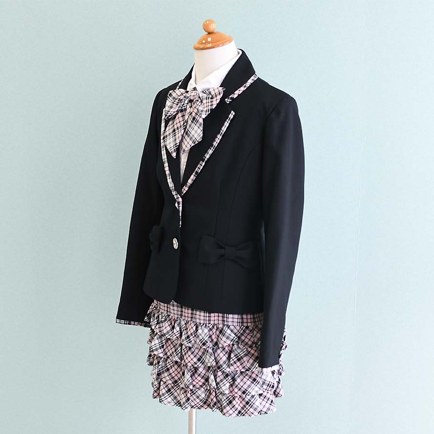 【レンタル】子供服 フォーマル レンタル 女の子【FG0068】【160】【黒/ピンクチェック】【Priuri】女の子 子供 スーツ レンタル/入学式/卒業式/卒園式/七五三/お呼ばれ/結婚式/冠婚葬祭/お受験服