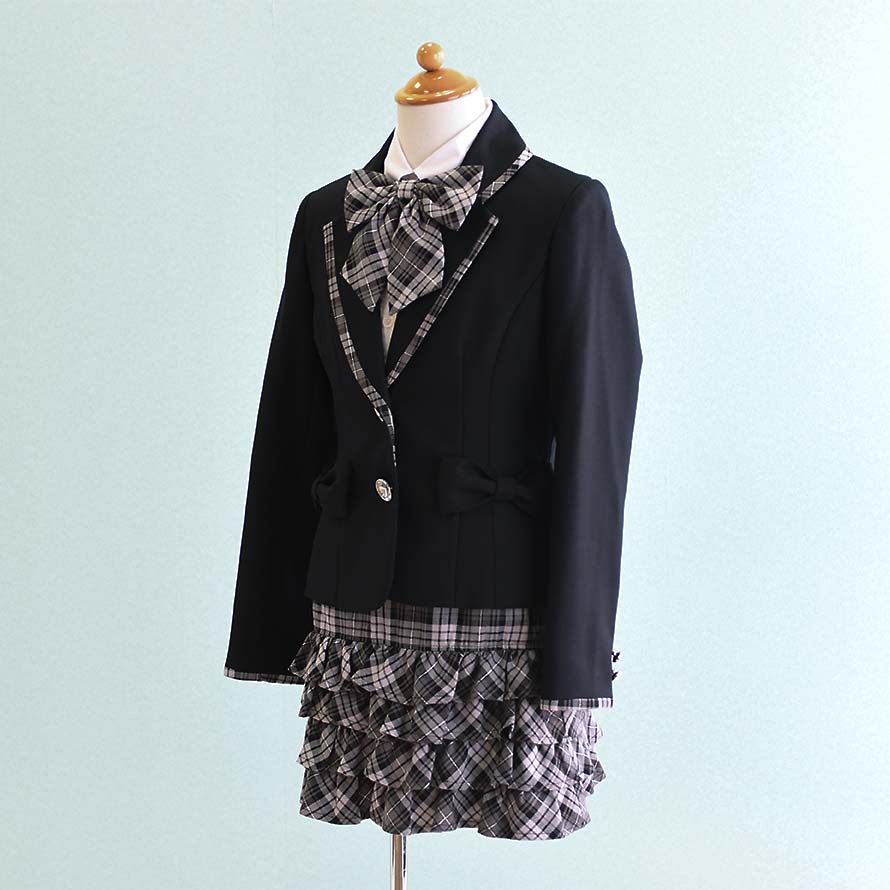 【レンタル】子供服 フォーマル レンタル 女の子【FG0072】【150】【黒/グレーチェック】【PRIURI】女の子 子供 スーツ レンタル/入学式/卒業式/卒園式/七五三/お呼ばれ/結婚式/冠婚葬祭/お受験服