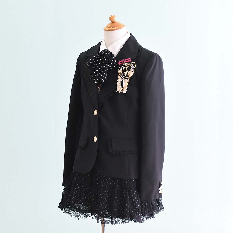 【レンタル】子供服 フォーマル レンタル 女の子【FG0028】【160】【黒・黒白/ドット・レース】【priuri】女の子 子供 スーツ レンタル/入学式/卒業式/卒園式/七五三/お呼ばれ/結婚式/冠婚葬祭/お受験服