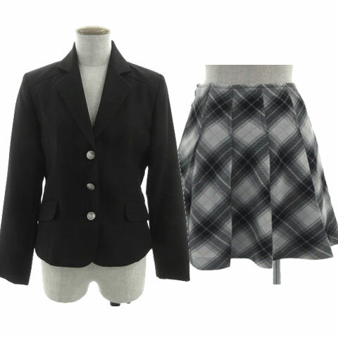 【中古】プリウリ Priuri セットアップ フォーマル ジャケット テーラードカラー シングル 3B スカート フレア プリーツ ひざ丈 チェック ブラック 黒 ホワイト 白 ピンク 160 キッズ 【ベクトル 古着】 250331