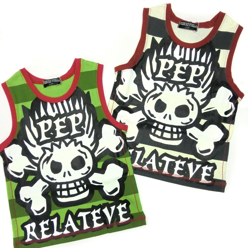 半端在庫売り尽くし【メール便(S)OK】PUER ED PUELLA★ひょうきんスカルの太ボーダープリント タンクトップ 《100cm 110cm 120cm 男児 男の子》
