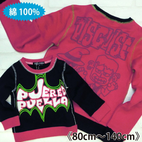 半端在庫売り尽くし【メール便(S)OK】PUER ED PUELLA★コウモリロゴ柄 キッズ トレーナー《100cm 110cm 120cm 130cm 140cm 男児 男の子》