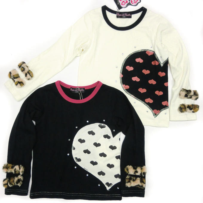 半端在庫売り尽くし セール 【メール便(S)OK】PUER ED PUELLA★大きなハートアップリケの長袖Tシャツ《100cm 130cm 女児》