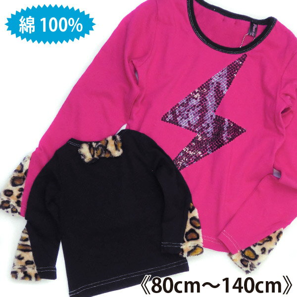 半端在庫売り尽くし セール 【メール便(S)OK】PUER ED PUELLA★稲妻スパンコール付き 長袖 Tシャツ《80cm 90cm 100cm 110cm 120cm 130cm 140cm 女児 女の子》